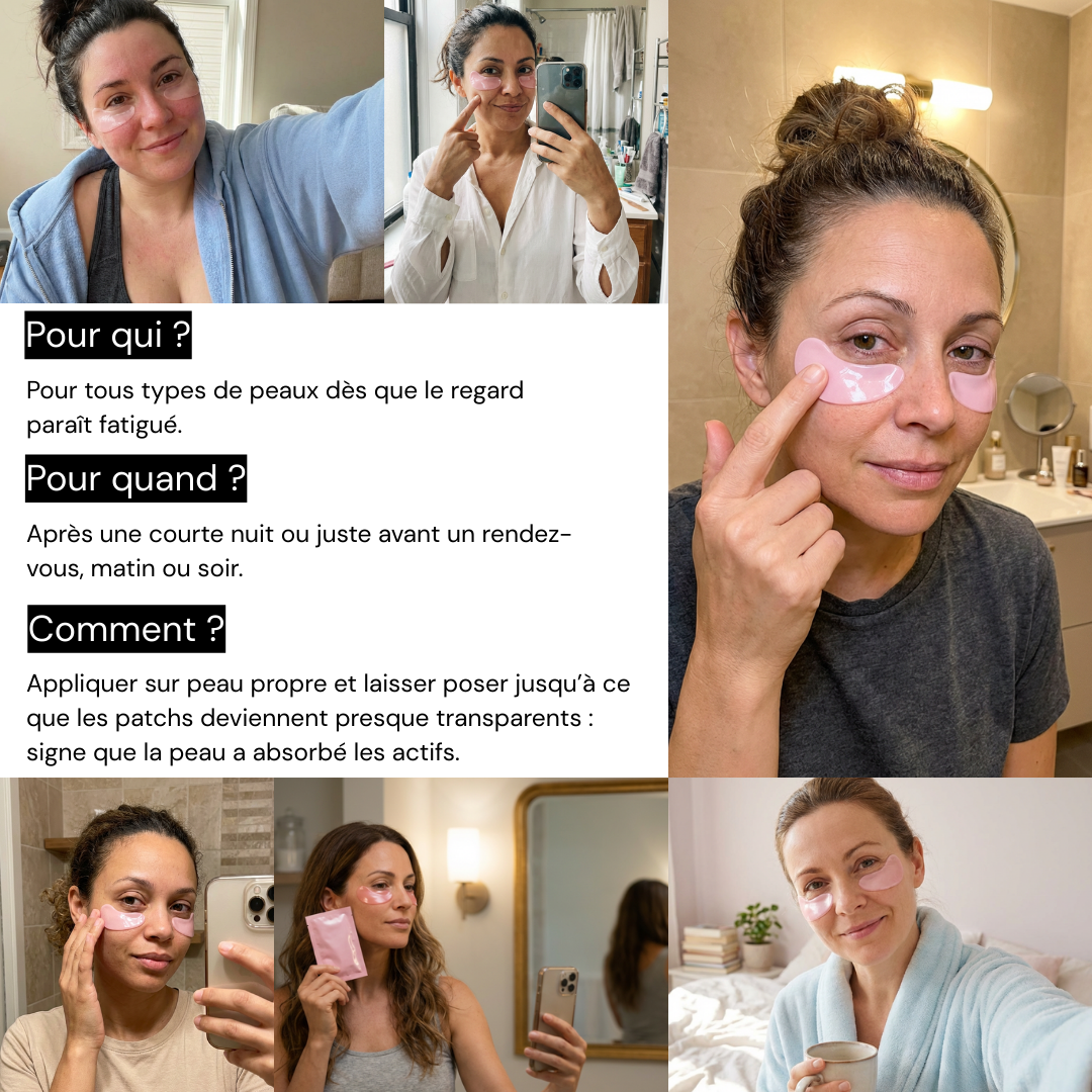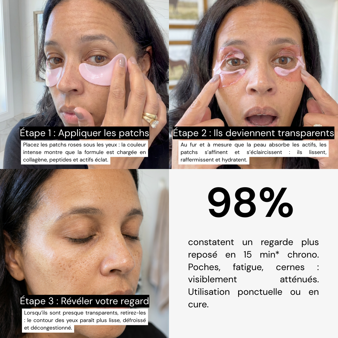 Non. Nos patchs hydrogel adhèrent parfaitement et restent en place pendant toute la durée du soin. Vous pouvez bouger librement, prendre votre café ou consulter vos emails — ils ne bougent pas